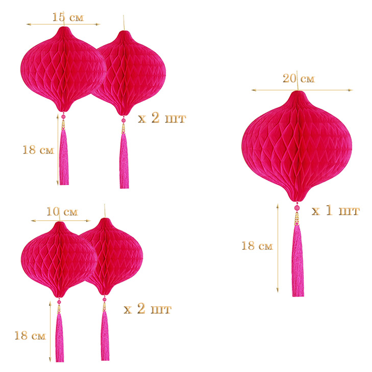 НАБОР бумажное украшение Шары-соты с кисточкой, малиновый - 5шт: