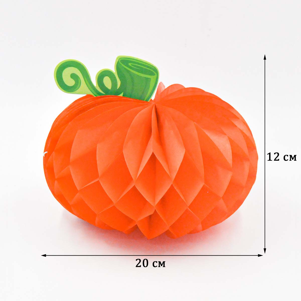 Бумажное украшение "Тыква" 20х12 см оранжевый — сочный и праздничный элемент для оформления стола, фотозон, витрин и интерьера. Поставляется в сложенном виде, легко раскрывается в пышную объёмную форму.