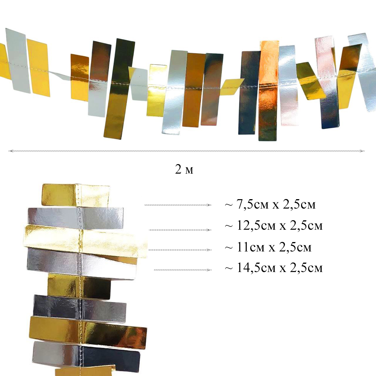 Гирлянда "Прямоугольники" 2 м золото+серебро