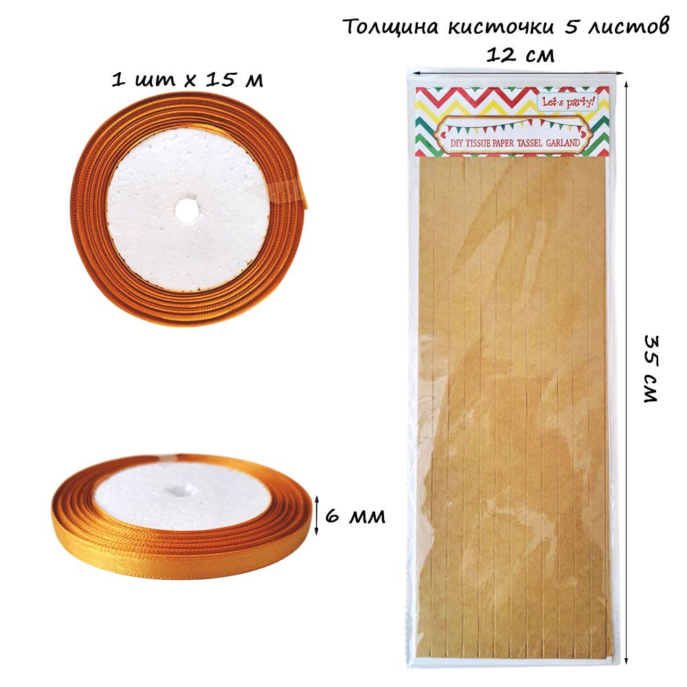 Можно разделить кисточки по 2-3 листа, равномерно распределить по всей ленте и получить в несколько раз больше кисточек. Это позволит создать гирлянду максимальной длины для эффектного оформления больших пространств, либо оставить их пышными для нарядного вида.