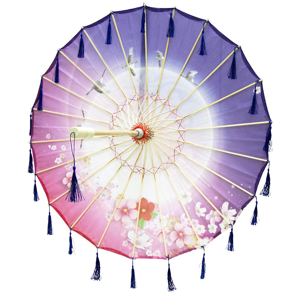 Китайский тканевый зонтик цветочный с кисточками 82х54см, №4