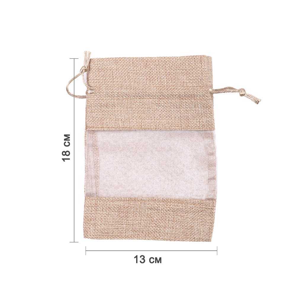 Мешочек из мешковины и органзы 13х18 см натуральный