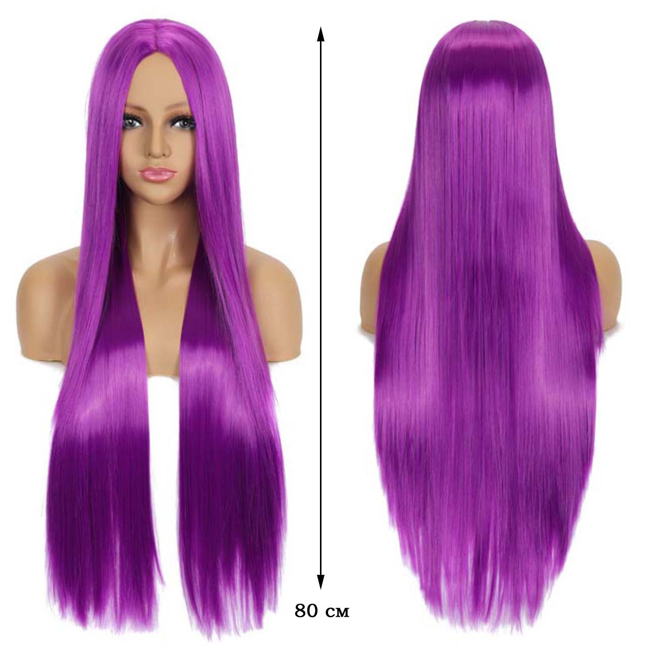 Парик прямой длинный без челки, изготовлен из современного искусственного материала.