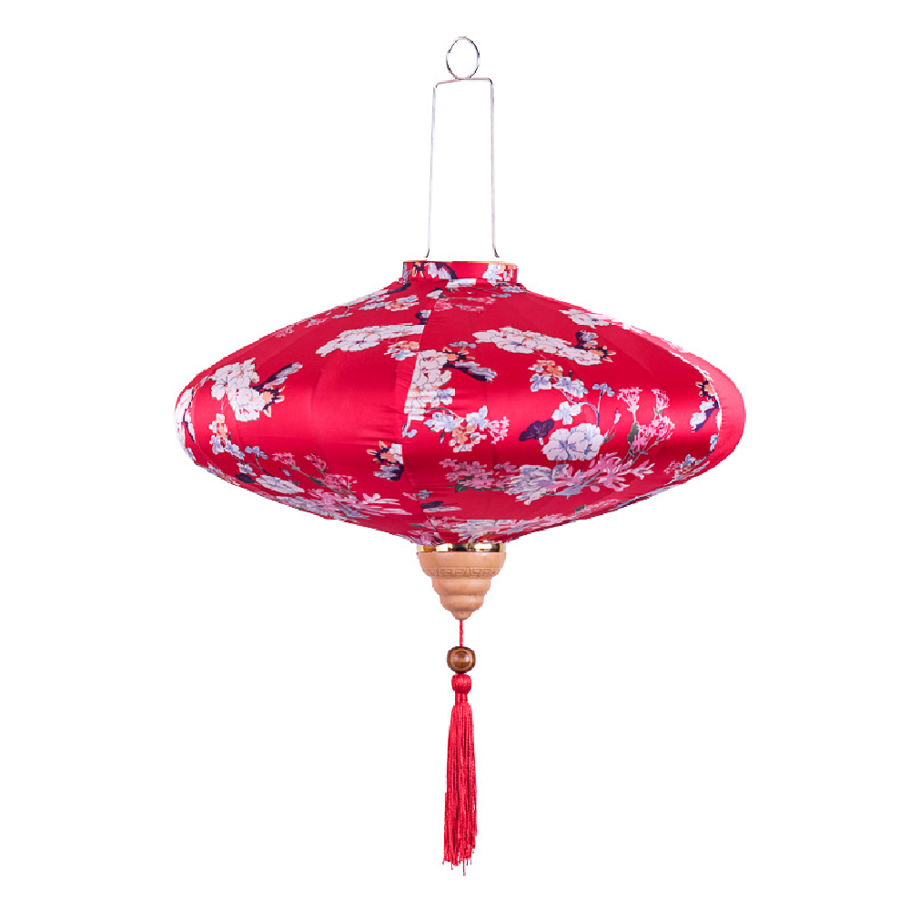 Это традиционные подвесные фонарики ручной работы, изготовленные из шелкового материала с элегантным цветочным узором, которые делают его изысканным и красивым.